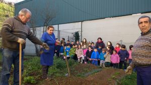 Los huertos escolares intergeneracionales suponen un instrumento de trabajo fuera del aula que favorecen la adquisición de habilidades por parte del alumnado y la convivencia de mayores y pequeños. Los  mayores aportan de forma oral y práctica sus conocimientos en la materia y los alumnos aprenden a valorar el entorno en el que viven, lo que les ofrece o puede ofrecer la tierra, el trabajo de sus abuelos y las diferencias de vida de unos y otros. Se trata de un proyecto en el que tanto la comunidad educativa como la asociación de mayores están muy ilusionados y que ayudará a crear vínculos y espacios para la convivencia y a que los niños, muchos de ellos sin origen en el concejo, enraícen.