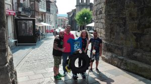 Revuélcate es una aventura solidaria que arranca el 6 de julio en Irún y tienen previsto llegar a Santiago de Compostela el 23 de julio, en total 16 días de camino con sus 16 noches volteando una rueda de mas de 80 kg de peso . El día 17 de julio esta rueda solidaria entrará en el concejo de Salas hacía las tres de la tarde por Cornellana.
