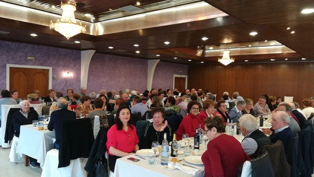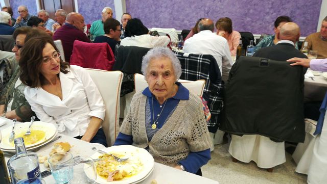 Los vecinos de los pueblos de Somines y Nalió se reunieron este año en el restaurante Lupa para celebrar la tradicional comida del socio que vienen organizando desde que se constituyeron en asociación allá por el año 2003. Viene siendo tradicional la asistencia de María Luisa Álvarez Flórez, que este año acudió con nueve meses más de edad al descubrir que en su partida de nacimiento figuraba diciembre del año 1921 como fecha de su nacimiento y no agosto de 1922 como indicaba en su DNI. Al preguntarle cómo le había sentado el hecho de haber descubierto que tenía nueve meses más de edad, responde que mal, que ahora para caminar ya tiene que utilizar el bastón. Viuda desde hace varios años, reconoce que trabajó mucho durante su vida en las labores del campo pero que ahora con 97 años, sus hijas la cuidan y la miman mucho. La socia más joven presente este año en la comida fue Elena Iglesias Suárez con 24 años.