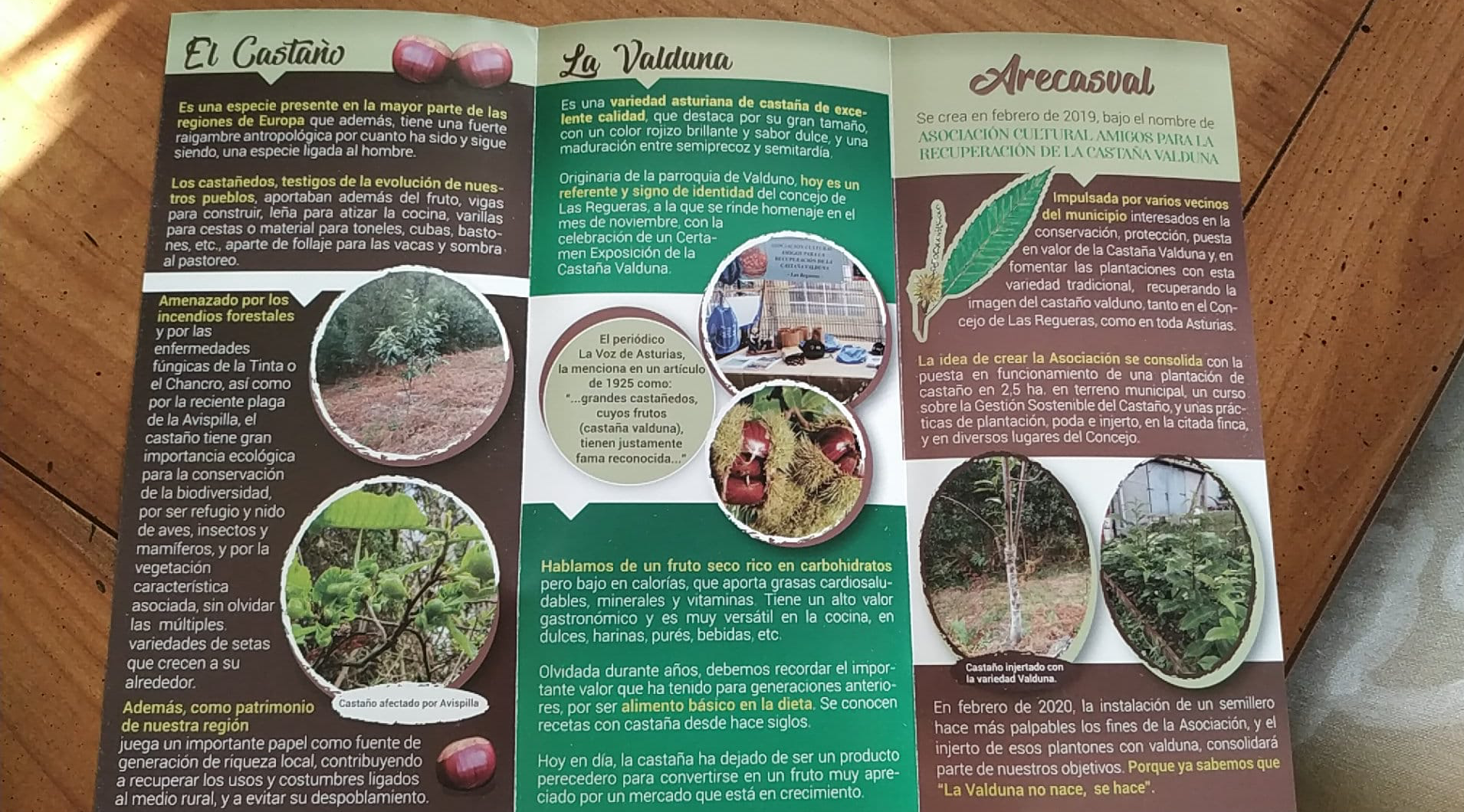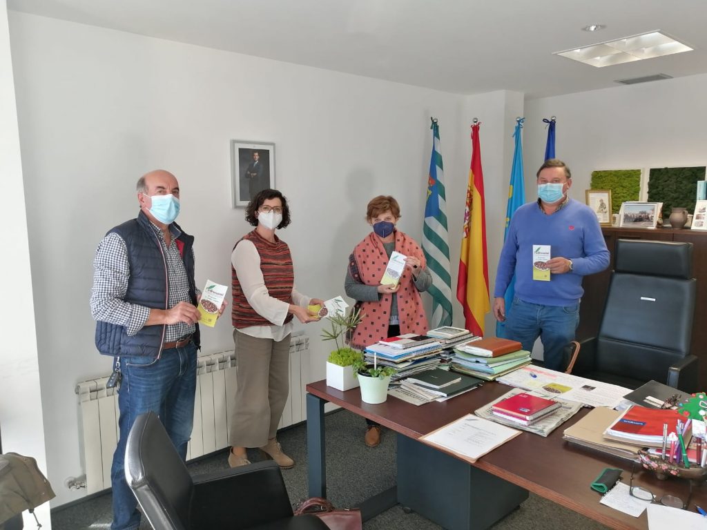 Aresvacal presentó el folleto al Ayuntamiento reguerano, que subvencionó la edición, y destaca que los castañares «pueden ser un revulsivo» para el concejo