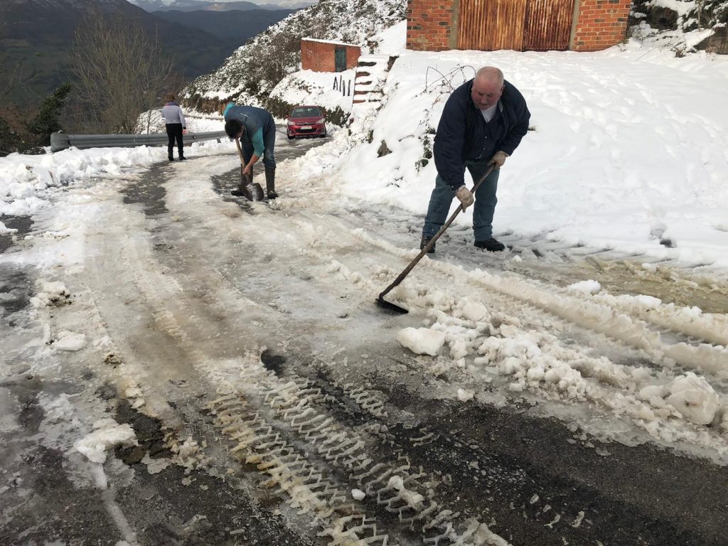Aunque remite el temporal de nieve, la que cayó estos días se mantiene por las bajas temperaturas cuando no se ha convertido en hielo, especialmente en concejos altos, causando problemas en los accesos a algunos pueblos. Es el caso de Yernes y Tameza. Ayer Villaruíz y Fojó estaban incomunicados y algún vecino se tuvo que quedar en casa sin poder ir a trabajar.