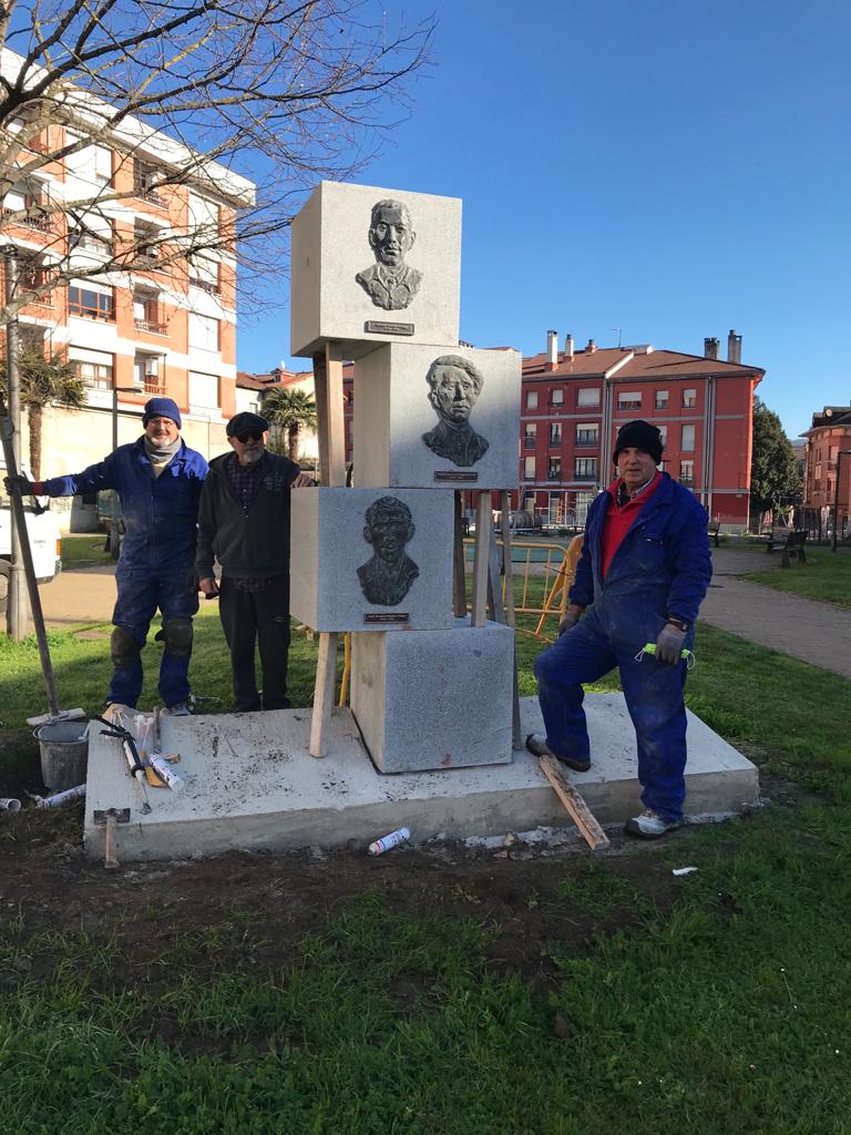 Grado tiene ya un monumento en honor a sus vecinos asesinados por los nazis. El escultor Juan de la Fuente dirigió esta mañana la colocación de la escultura, la primera que rinde homenaje a los asturianos que perdieron la vida a manos de Hitler. De la Fuente, familiar de uno de los asesinados, es el autor de la obra, que reproduce en bronce el rostro de los tres mnoscones que perdieron la vida en Mauthausen, Trinitario de la Fuente Areces, Antonio García Arango y José Manuel Sánchez López. Las esculturas van engarzadas en tres bloques de granito que simbolizan las rocas que cargaban por la escalera de campo y en cada una va su cara en bronce y debajo la inscripción con sus nombres donde nacieron y donde murieron. La obra ha sido colocada en el parque de la Memoria Histórica en la propia villa de Grado, junto el monumento a los represaliados del franquismo, y se inaugurará oficialmente el 27 de febrero a las 12 de la mañana. Los trabajos han corrido a cargo de la Marmolería Moscona.