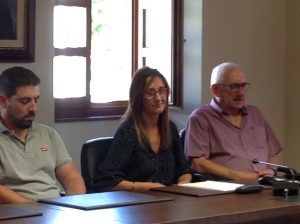Los concejales socialistas de Candamo Mariano Gómez, Marta Menéndez (próxima alcaldesa) y Gustavo Blanco, durante la sesión