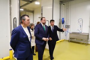 La empresa Benfer celebró esta mañana su medio siglo de vida por todo lo alto: con la inauguración de su nueva nave de la recta de Peñaflor, en Grado, con todos los adelantos técnicos para ahorro energético y refrigeración con CO2. Numerosos invitados quisieron participar del éxito de esta familia de empresarios, que desarrollan su actividad en Tineo y Grado y que dan empleo a medio centenar de personas, «que ampliarán cuando se ponga a pleno rendimiento la nueva nave», según detalló el presidente regional, Adrián Barbón, que acudió al acto, en el que también estuvieron el alcalde de Grado, José Luis Trabanco; la alcaldesa de Las Regueras Maribel Méndez y el de Tineo, José Ramón Feito, y el consejero de Medio Rural, Alejandro Calvo.