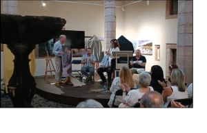 La inauguración de la bienal llenó la Casa de Cultura de música y poesía, en un acto en el que la familia recibió retratos del fallecido escultor, de Favila, Iván Jambrina, Almudena Fernández y Marcos Peñaflor