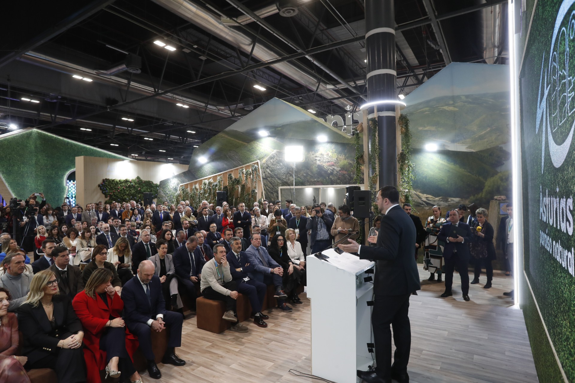 El presidente asturiano, Adrián Barbón, defendió hoy en FITUR la gestión que la consejería de Medio Rural está haciendo de la tuberculosis bovina en Tineo. «Tengo un equipo técnico y un consejero que lo están haciendo magníficamente bien, en el sentido de que han dado la cara. Estamos aplicando un protocolo nacional, ante un problema de salud pública, que ojo, si no se controla ese brote el riesgo es que se extienda por toda Asturias y se lleve por delante todo el sector ganadero asturiano». El presidente, que hizo estas declaraciones en respuesta a los periodistas, durante los actos de celebración del Día de Asturias en FITUR, puso el ejemplo de la pandemia y cuestionó la postura del PP, «critica aquí lo que hace en Galicia, Cantabria y Castilla y León. ¿Cómo se llama eso?».