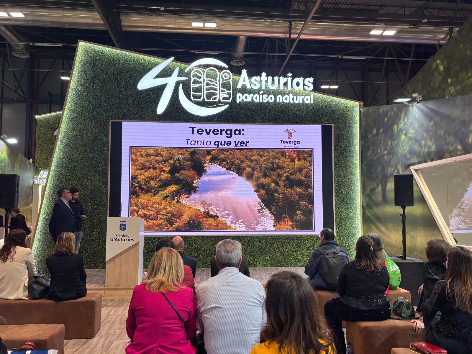 Teverga presentó hoy en FITUR su nueva marca turística, con el lema ‘Teverga, tanto que ver’. «Presentamos la nueva marca turística de Teverga y los avances del Plan de Sostenibilidad Turística, principalmente expusimos la actuación de mejora de la movilidad que pretende poner en valor la Senda del Oso de Teverga, entre el Parque de la Prehistoria y Entrago», señaló tras el acto el alcalde tevergano. Durante la presentación se proyectó un vídeo promocional del concejo, con algunos de los principales iconos de Teverga; y posteriormente otro vídeo, realizado por Juanjo Menéndez el cual muestra el tramo de la Senda del Oso entre el Parque de la Prehistoria y Entrago, así como otros atributos del concejo.