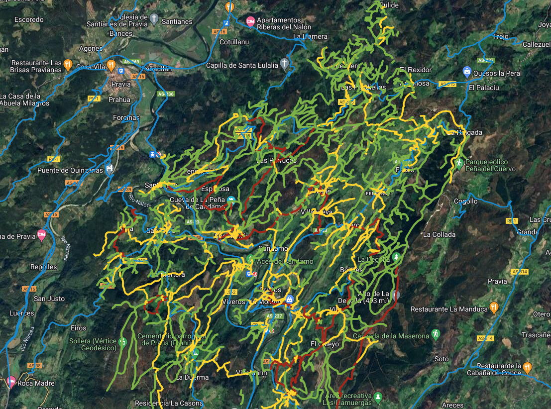 El trabajo ha sido recopilado en un mapa interactivo que posiciona sobre el terreno el trazado de más de 700 caminos que recorren todo el concejo. Un exhaustivo trabajo de campo acompaña cada ficha (a la que se accede ‘pinchando’ con el ratón sobre el camino concreto situado en el mapa). Los caminos se identifican con su nombre, lo que supone también un interesante trabajo toponímico, y en algunos casos, pocos, son senderos sin nombre. La ficha incluye una imagen cartográfica con el sendero señalado, foto del camino, cuál es el estado de conservación, si está asfaltado o no, si está invadido por la maleza, y cómo se ha documentado su propiedad.