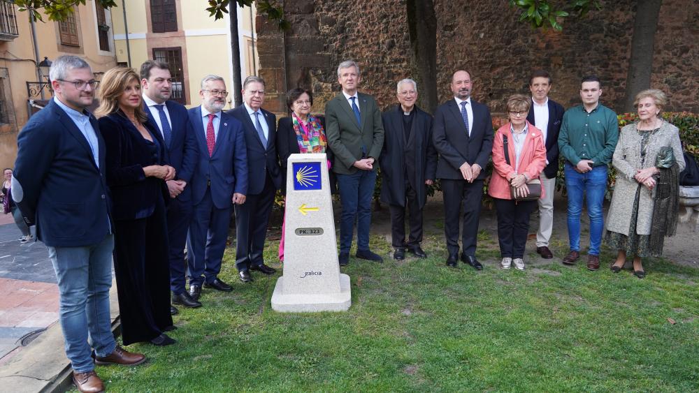 El alcalde de Oviedo, Alfredo Canteli, recibió ayer al presidente de la Xunta de Galicia, Alfonso Rueda, en Oviedo para inaugurar conjuntamente el hito del inicio del Camino Primitivo. Un mojón que marca los 323 km que separan las Catedrales de Oviedo y Santiago y que desde ayer se encuentra junto al Jardín de los Reyes Caudillos y el Monasterio de las Pelayas.