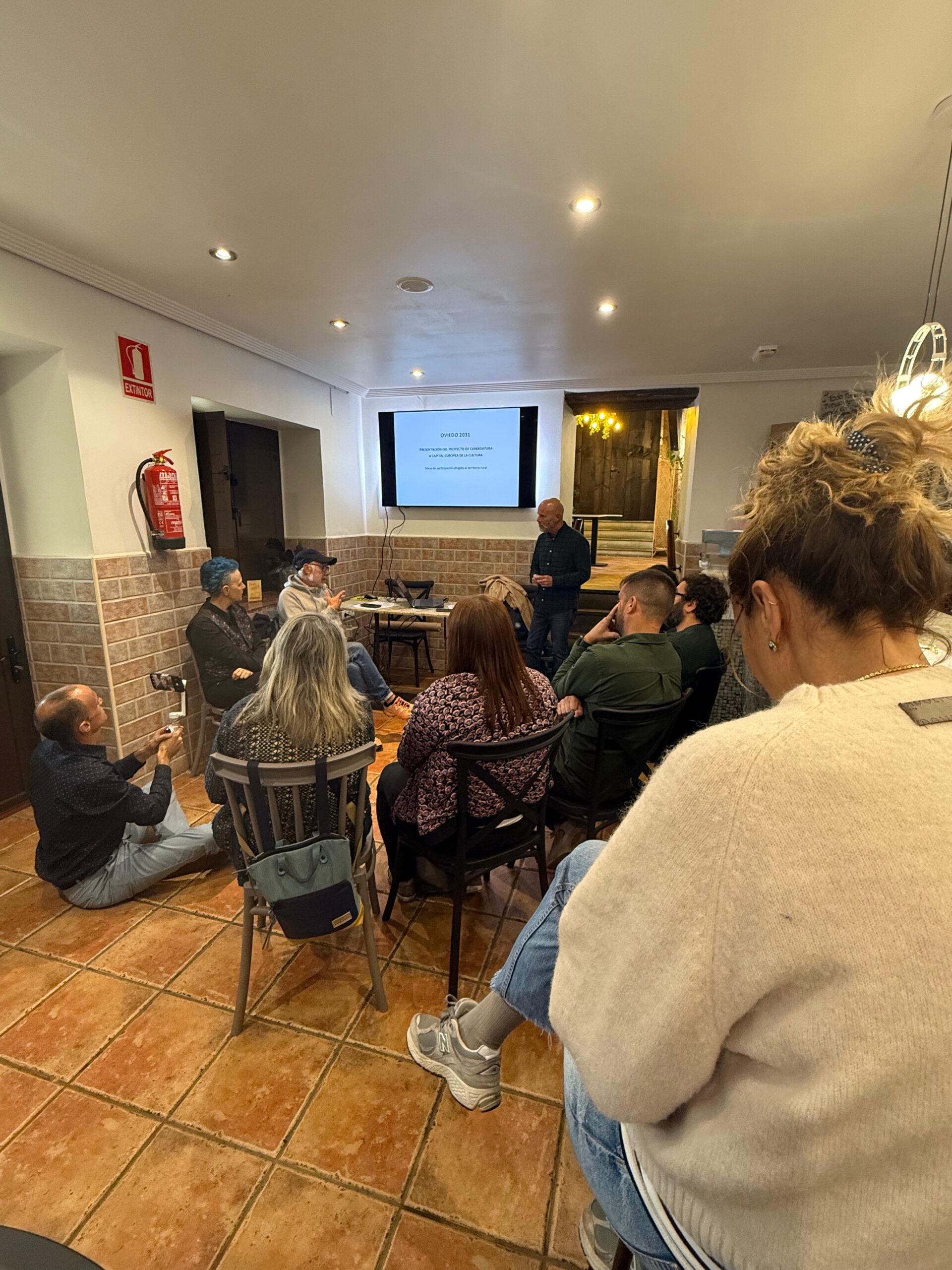 La sede de la empresa de comunicación rural Melodiopérez, en Valduno (Las Regueras) acogió un encuentro entre el equipo que promueve el proyecto ‘Oviedo capital cultural 2031’ y distintos activistas culturales de territorios rurales de toda Asturias. De la comarca estuvo presente la bibliotecaria de Las Regueras y corresponsal de LA VOZ DEL TRUBIA, Esther Martínez, y un representante de Néxodos, la bienal de arte en el medio rural de Candamo. Por parte del equipo de Oviedo estuvo el director del proyecto, Pepe Mompean, y su compañera Zoe López. El encuentro se enmarca en las mesas sectoriales desarrolladas por el equipo para ir creando con los agentes territoriales la candidatura en conjunto. En Valduno se celebró en encuentro con los agentes culturales del medio rural asturiano. Hoy se celebrará en el Palacio de Congresos otro con las bibliotecas y clubes de lectura, con la literatura como catalizador.