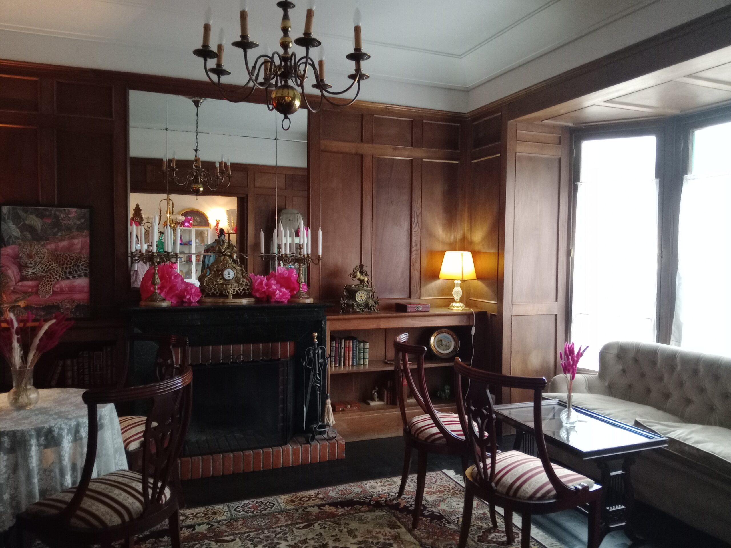 La casona, dividida en dos, como la construcción original (vivienda del empresario José Fuente, uno de los impulsores de la industrialización asturiana), es un espacio privado en una de sus alas, donde tiene la residencia la familia, y un especial espacio semipúblico en el otro, ya que se alquila en ocasiones para actos particulares, para sesiones de fotos, fiestas privadas o rodajes. No merece menos, con sus salones, habitaciones y estancias cuidadas al detalle que además son la sede habitual del Club Ley Seca, cuyos miembros, entre ellos los propietarios de la casona, organizan encuentros en torno a sus dos pasiones, el siglo XX y sus creaciones estéticas y las motos ‘Harley Davidson’.