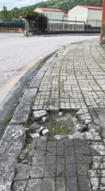 Socavones de más de 20 cms que destrozan bajos de coche, encharcamientos cada vez que llueve, firme deformado, plagado de baches… Pero el deterioro no afecta solo a la calzada, sino también a algunos tramos de acera (donde los hay), sin mantenimiento desde hace años y por los que hay que ir esquivando obstáculos. Si a ello se suma la ruina de numerosos edificios (algunos caídos desde hace tiempo y perimetrados con vallas de peligro de manera permanente) el escenario no se aleja mucho de la imagen de una ciudad bombardeada.
