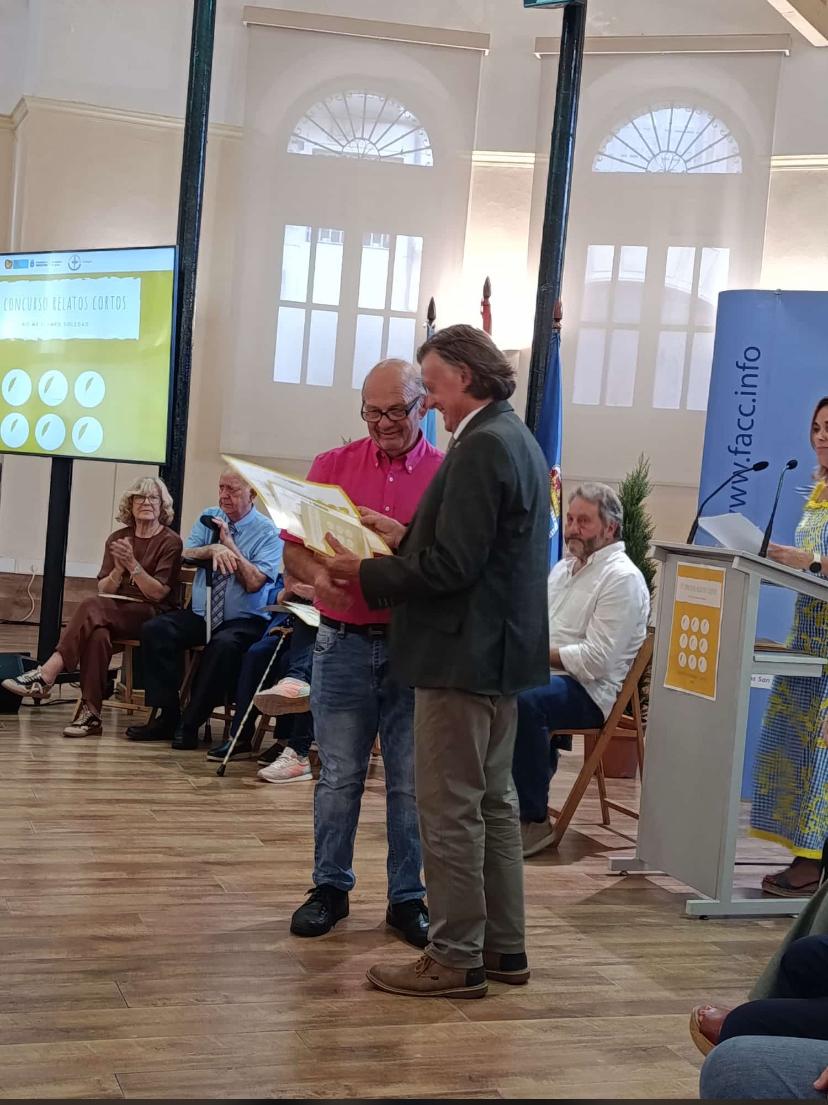 La plaza de Trascorrales de Oviedo acogió ayer miércoles la ceremonia de entrega de los premios de la IV edición del concurso de relatos “No me llames de soledad”, convocado por la Federación de Concejos para mayores de 65 años. En esta ocasión la mención municipal fue para Baldomero Álvarez Garcia, Mero, del programa Rompiendo Distancias del Valle del Oso por su relato “Viviendo y aprendiendo” que recibe su distinción de las manos del concejal ovetense José Ramón Prado.