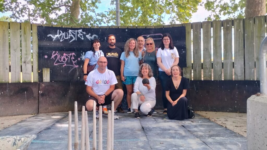 La peña moscona de bolos explica las técnicas de esta modalidad asturiana, en la que participaron una decena de personas
