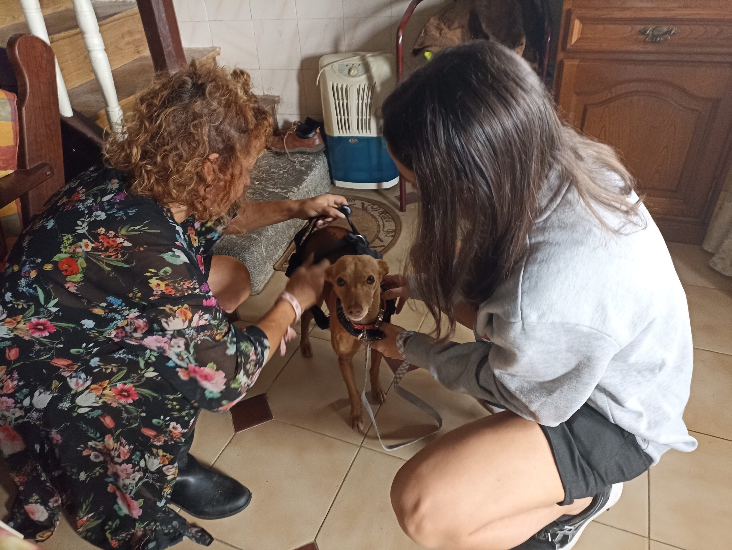Swing es una perrita podenca, canela, propiedad de la protectora Huella Verde de Olvera, en Cádiz. A principios del pasado mes de agosto su familia de acogida viajó a Asturias, a visitar a unos familiares en Pola de Siero. «Por algún motivo el 5 de agosto la perra se asustó, logró quitarse el arnés y echó a correr, la perdieron de vista», relata Mari Ángeles Gómez, de la protectora. Ahi empezó una pesadilla que ha finalizado más de un mes después y nada menos que a 40 kilómetros. Y es que la perrita apareció hace dos días en Castañeo del Monte, en Santo Adriano, una noticia que los vecinos trasladaron a este periódico para intentar encontrar a los propietarios. «Cuando vimos la noticia en LA VOZ DEL TRUBIA no podíamos creerlo, tan lejos de La Pola. Habíamos estado buscándola semanas, ayudados por voluntarios y rescatistas. Hubo varios avistamientos, porque pusimos comida y cámaras, pero nunca logramos cogerla, estaba muy asustada y huía. Desde finales de agosto no teníamos noticias de ella, estábamos desesperados», cuenta Silvia, una de las personas de acogida, que a esas alturas ya había regresado a Cádiz, manteniendo el contacto con los rescatistas y voluntarios asturianos que seguían buscando a la perra.