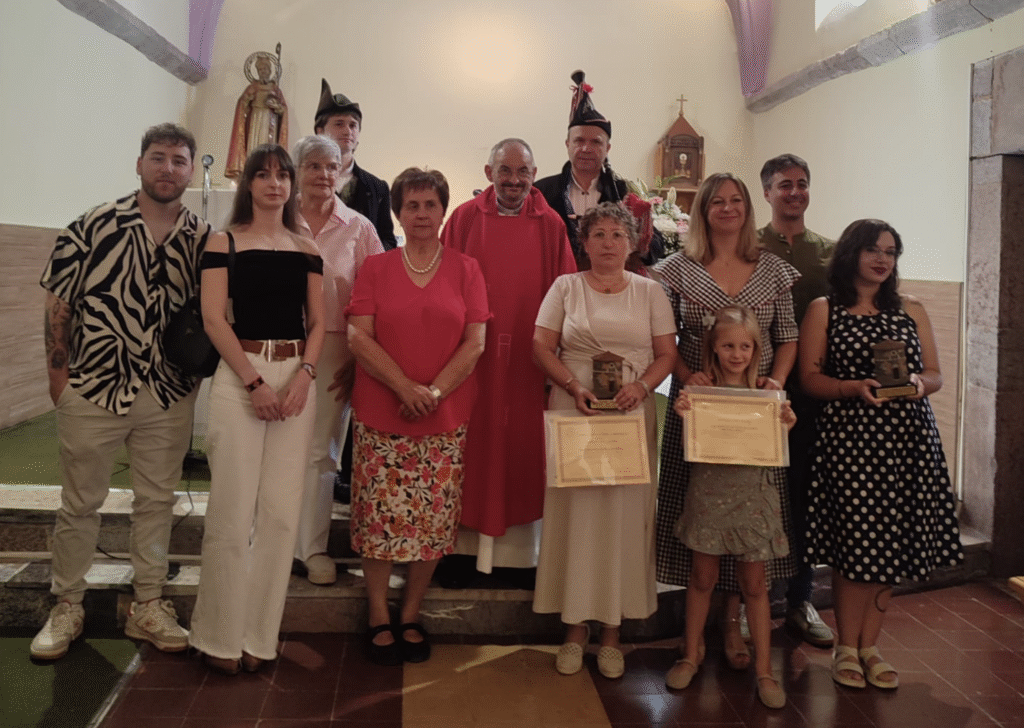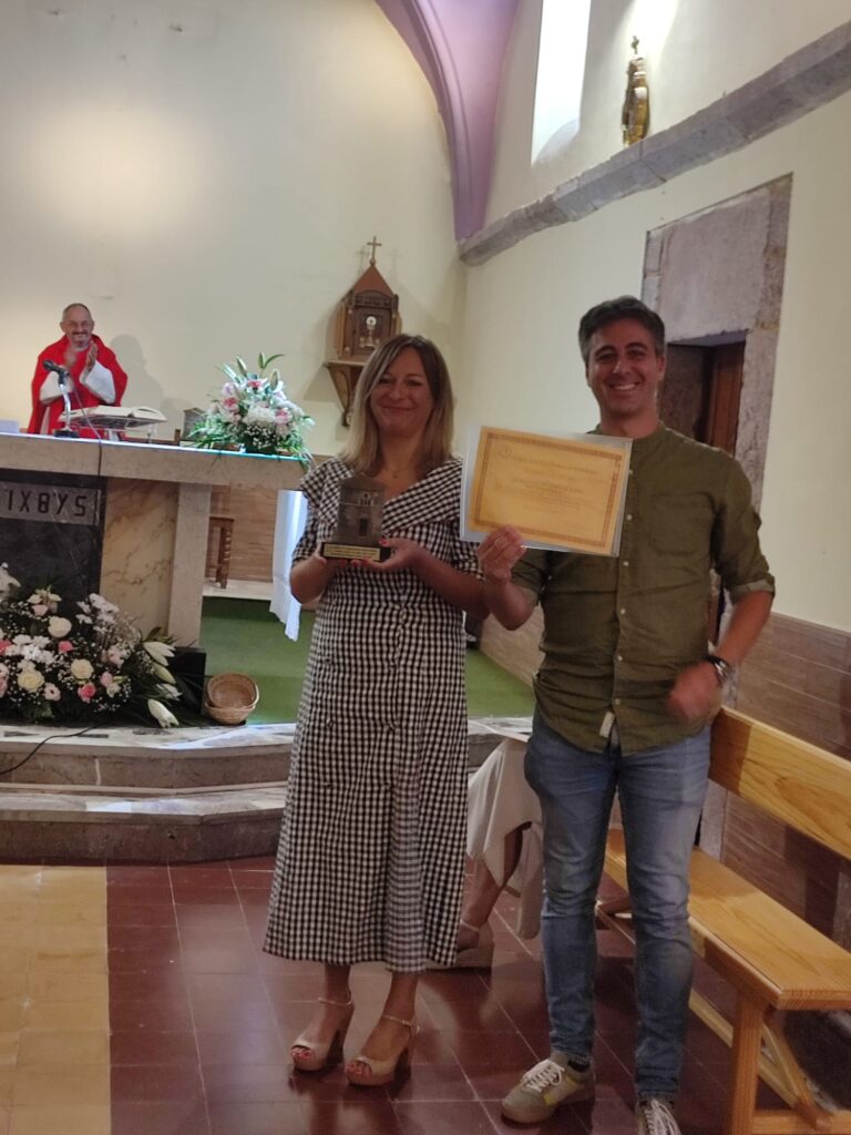 La Piedriquina concedió el premio al sacerdote por sorpresa, para rendir homenaje a sus doce años en el concejo, en el marco de las fiestas del Cristo de Biedes