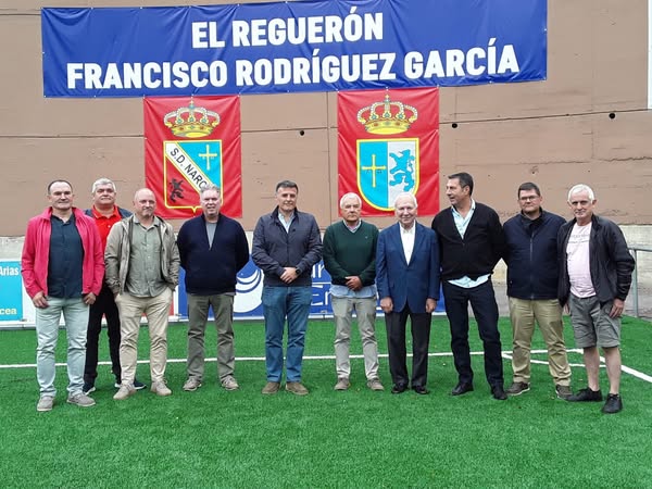 El alcalde de Cangas del Narcea, José Luis Fontaniella, y los concejales Marcial Fernández y José Manuel Menéndez (Biescas) han participado en el acto celebrado por la SD Narcea en el que se dio nuevo nombre a las instalaciones deportivas municipales que gestiona el club futbolístico, que han pasado a llamarse “Campo del Reguerón Francisco Rodríguez Garcia”. Se trata de «un merecido reconocimiento a un cangués que ha ayudado intensamente al club y que ha participado económicamente junto a socios, empresas y Ayuntamiento de Cangas en la remodelación del nuevo césped con un coste total de más de 210.000 euros». La SD Narcea es un club que gestiona deportivamente a más de 200 jóvenes y cuya masa social supera los 500 socios.