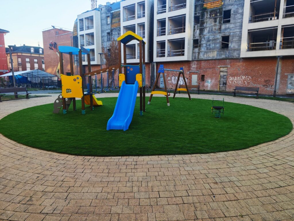 La concejalía de Parques y Jardines de Grau, siguiendo con la política de mejora de las zonas de juego infantil, ha renovado los columpios del Parque de la Memoria Histórica, instalando una estructura multijuego diseñada para fomentar el juego activo y el desarrollo de habilidades motoras en los niños. Con dos torres conectadas mediante un puente de cuerda, esta estructura ofrece distintas opciones de juego, incluyendo toboganes de diferentes alturas y acceso mediante escalera. El parque también cuenta con un columpio doble y un balancín individual de muelle anti pinzamiento, así como la instalación de 100 m2 de césped artificial de alta gama de 25 mm. La obra contó con una inversión de 15.137 euros.