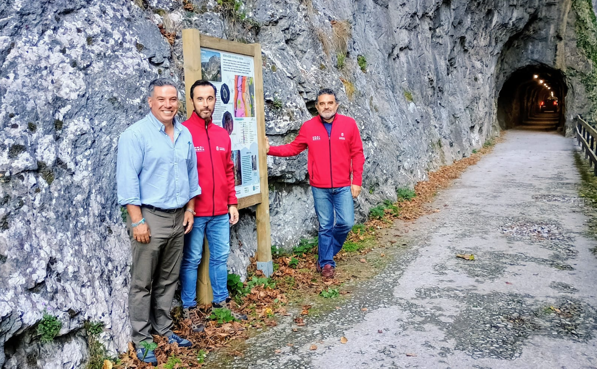 El director general de Custodia del Territorio y Prevención de Incendios, David Villar, acompañado por el alcalde de Proaza, Fernando Figaredo, presentó ayer un nuevo panel divulgativo en la Senda del Oso, dedicado al Desfiladero de Peñas Juntas, un enclave reconocido como Lugar de Interés Geológico. El panel, elaborado por el geógrafo trubieco Toño Huerta, pone en valor la riqueza geológica y paisajística de este estrecho desfiladero.