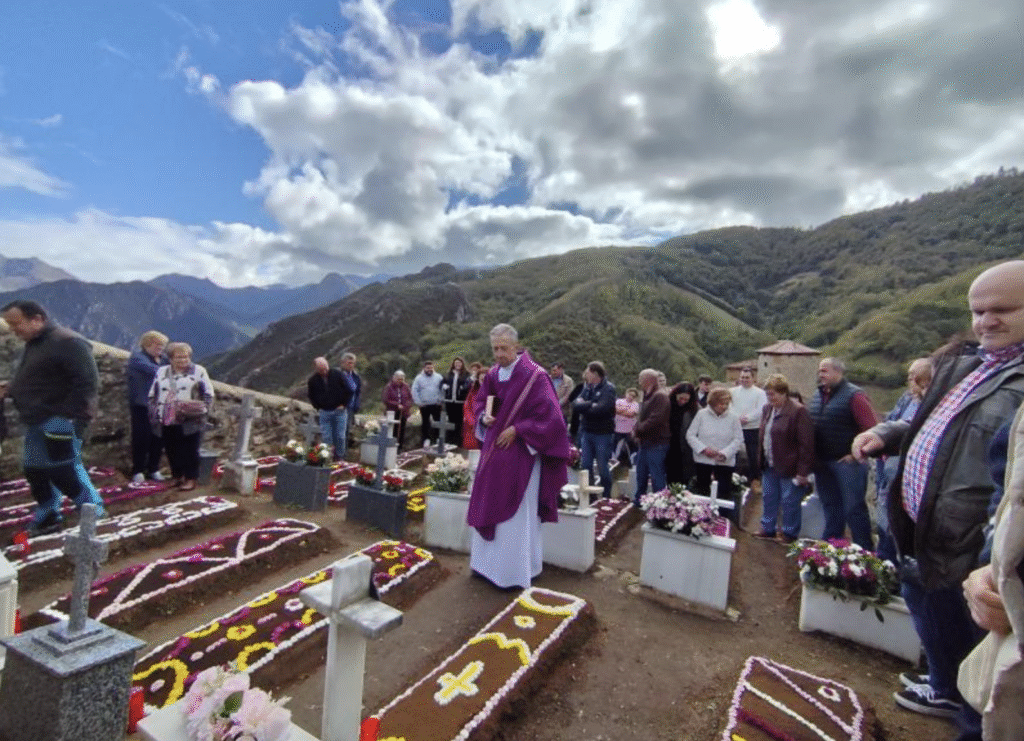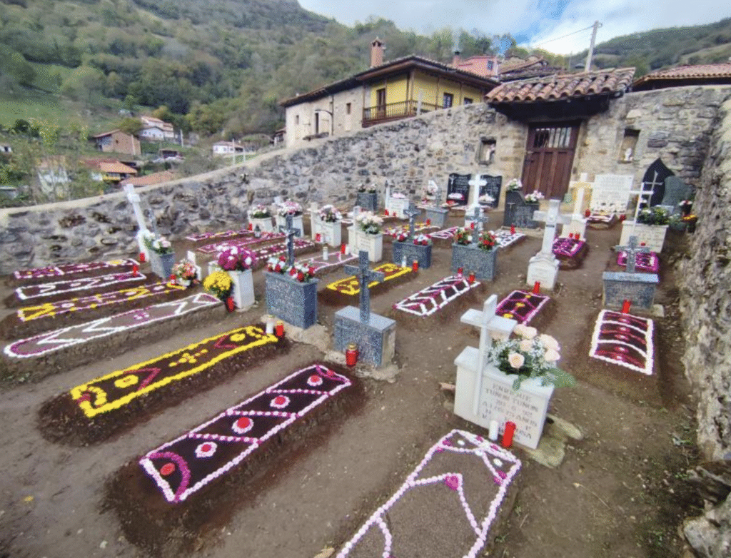 Banduxu, en Proaza, es singular por muchos motivos, entre ellos su peculiar cementerio, que tradicionalmente era de propiedad comunal, de todos los del pueblo, con sepulturas de tierra que para Todos los Santos, el 1 de noviembre, se adornan con tierra negra y flores. Este año los vecinos han cumplido una vez más con sus muertos, y han adornado cumpliendo con la tradición todas las sepulturas, usando tierra negra o borras de café, y flores haciendo los tradicionales dibujos. La decoración se ha hecho en las sepulturas de los difuntos que aún tienen familia en el pueblo, y también en las que ya no tienen descendientes que los puedan honrar. Por motivos de organización de la parroquia, la celebración por Todos los Santos se hizo en la localidad de Proaza por anticipado, el pasado domingo.