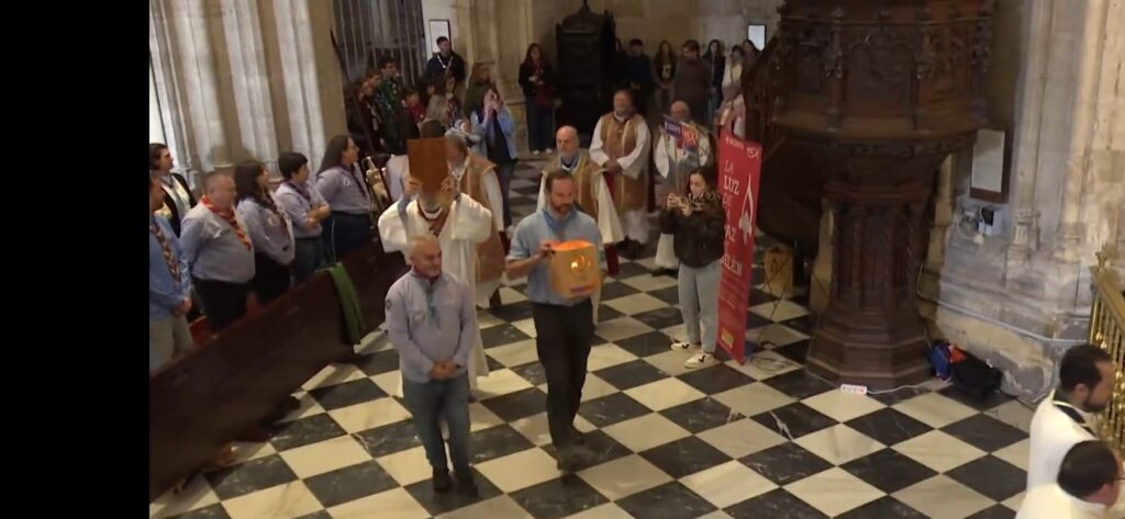El reguerano Daniel Menéndez, responsable de la oficina de normalización lingüística de Grau y Candamo, fue uno de los encargados de traer la luz de Belén desde Linz (Austria) hasta Oviedo. En un viaje relámpago en furgoneta, tres scouts del Movimiento Scout Católico viajaron al país alpino para cumplir con la tradición escultista que se remonta a 1986. La luz viaja desde la basílica de la Natividad de Belén en Cisjordania a la ciudad austriaca desde donde se reparte a todo el mundo. La ciudad receptora en España en esta Navidad es Oviedo, donde ayer se reunieron en la Catedral más de 500 scouts de todo el país para repartirla por las diferentes parroquias. Daniel Menéndez pertenece al movimiento scout desde los 6 años que comenzó en el Grupo de Escamplero y actualmente pertenece al de Pola de Siero.