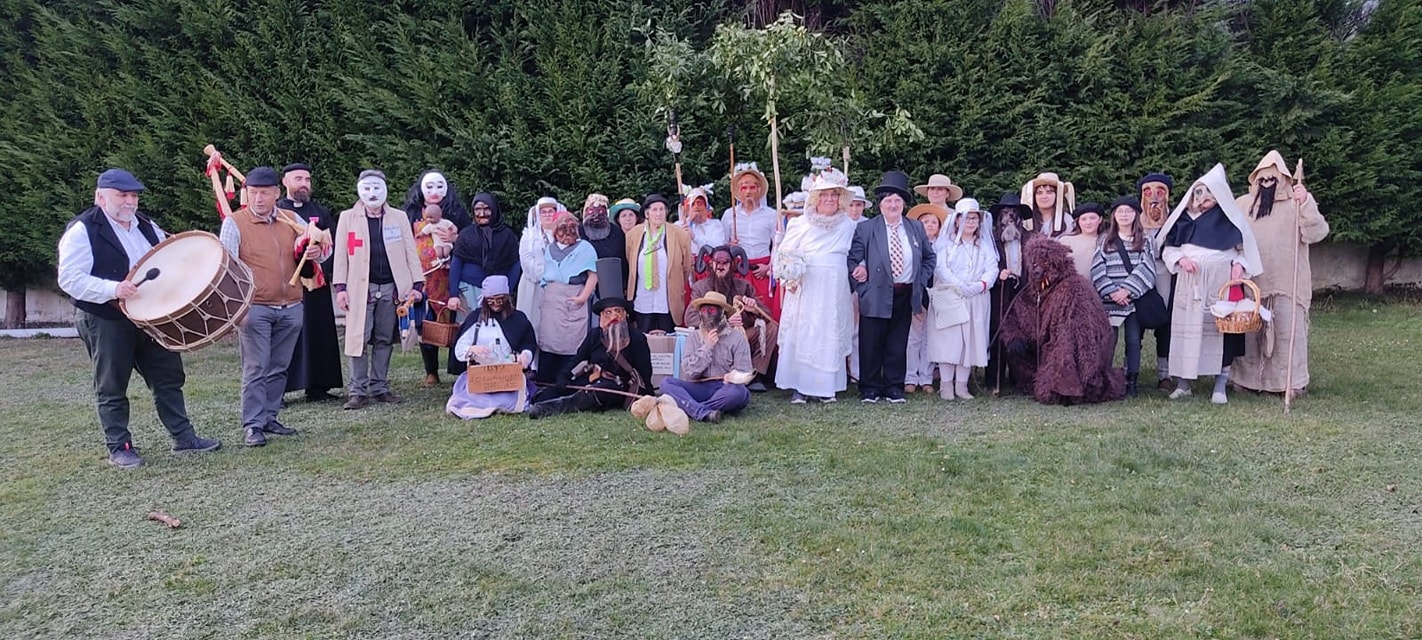 Personajes como los xamasqueiros, el vixirigueiru, la dama y el galán, el oso, el diablo, el ceniceiru, los guapos, la preñada, etc. conforman un espectáculo colorido que, sin duda, llama la atención de quienes presencian su puesta en escena. Además, y como es habitual, representarán su comedia “El casoriu” en cada uno de los pueblos.