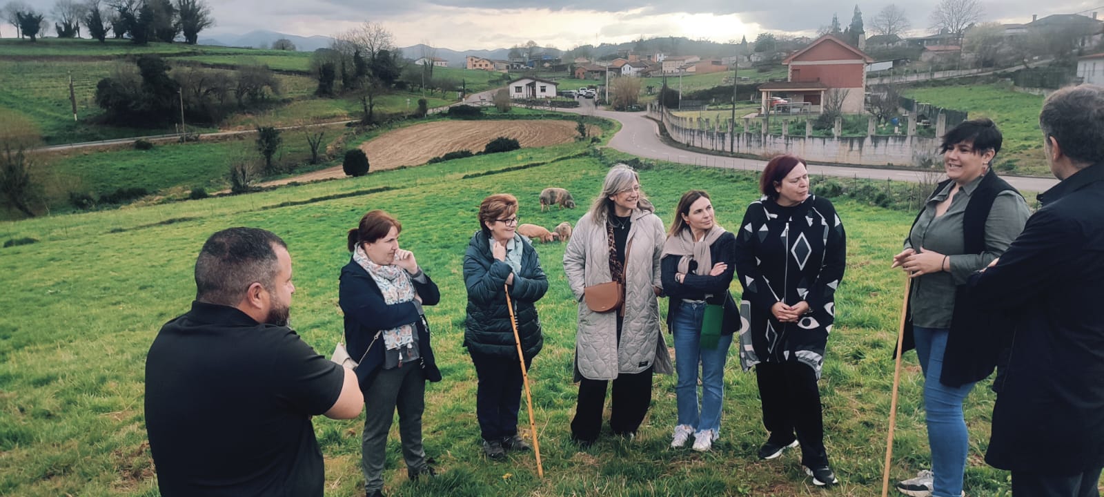 La secretaria de Estado de Agricultura y Alimentación, Begoña García, junto a Rocío Huerta, directora general de Ganadería del Principado, visitó hoy la ganadería Ca Mamina, en Las Regueras, que cría en semilibertad gochus asturceltas alimentados con castañas, en una jornada que contó con la asistencia de la alcaldesa de Las Regueras, Maribel Méndez.