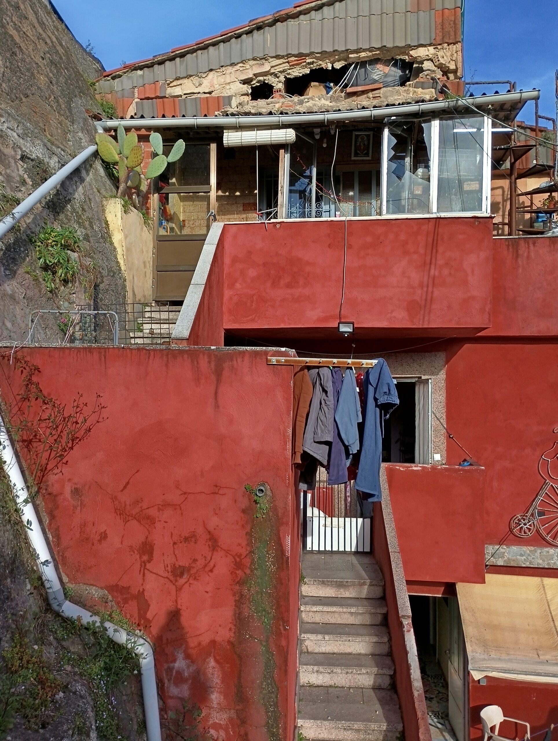 Bomberos de Oviedo precintaron ayer la casa del barrio de Cataluña, en Trubia, cuyo desván se desplomó este fin de semana, obligando a desalojar a tres familias, una de ellas con una mujer con un 65% de discapacidad. Técnicos municipales y un bombero acudieron al edificio para acompañar a uno de los propietarios a rescatar a sus pájaros y recoger algunas pertenencias y dejaron precintado el edificio. Los afectados pasaron estos días realojados por el Ayuntamiento de Oviedo en un hotel, un realojo temporal que creen que finaliza hoy, «ya tendríamos que empezar a pagar». Están a la espera de una solución al problema por parte de los servicios municipales, como una vivienda de emergencia.