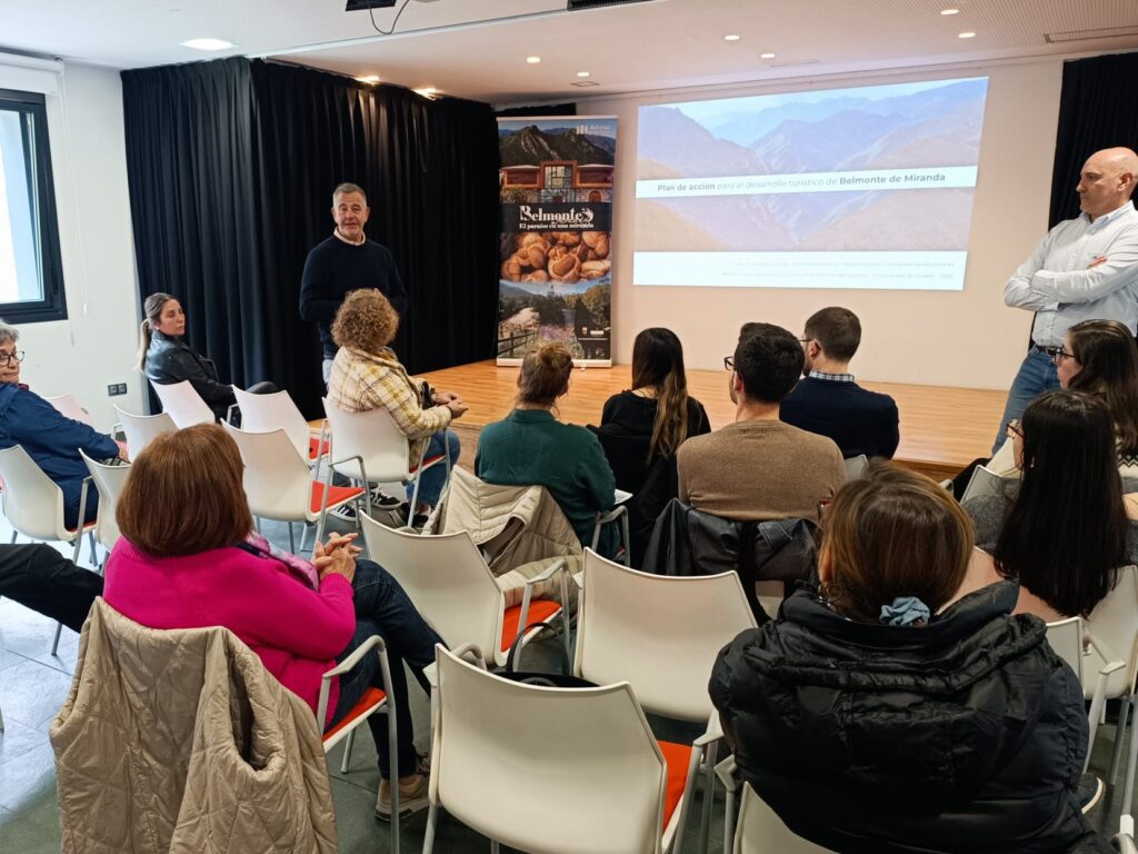 Aprovechar los recursos culturales y naturales de Belmonte para ofrecer experiencias únicas. Esta es la clave del estudio sobre el potencial turístico de Belmonte de Miranda que han elaborado estudiantes del Máster Universitario en Dirección y Planificación del Turismo de la Universidad de Oviedo, dentro de la asignatura Análisis de un destino turístico, impartida por el profesor Enrique Louredo. Los estudiantes plantearon posibles líneas de mejora de la oferta turística, siguiendo el modelo de ‘Aprendizaje por Servicio’, «se trata de que los estudiantes lleven a cabo una labor formativa tutelada,  que a la vez proporciona un servicio de valor a la sociedad». El estudio se ha ejecutado a título  gratuito, sin coste económico para el Ayuntamiento de Belmonte de Miranda, «agradecemos sinceramente sus aportaciones y el trabajo realizado», señala el alcalde, Gilberto Alonso, que acudió a la presentación junto a la concejala de Cultura, Turismo y Ocio, Maleny Martín.