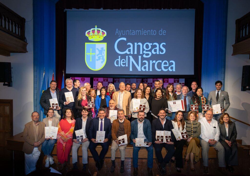 El teatro Toreno, en Cangas del Narcea, acogió el pasado viernes la gala de entrega de los Premios AEPEV, que cada año concede la Asociación Española de Periodistas y Escritores del Vino y los Espirituosos, que reconocen los mejores vinos y destilados de España según el criterio de los profesionales de la comunicación y la información que integran este colectivo.