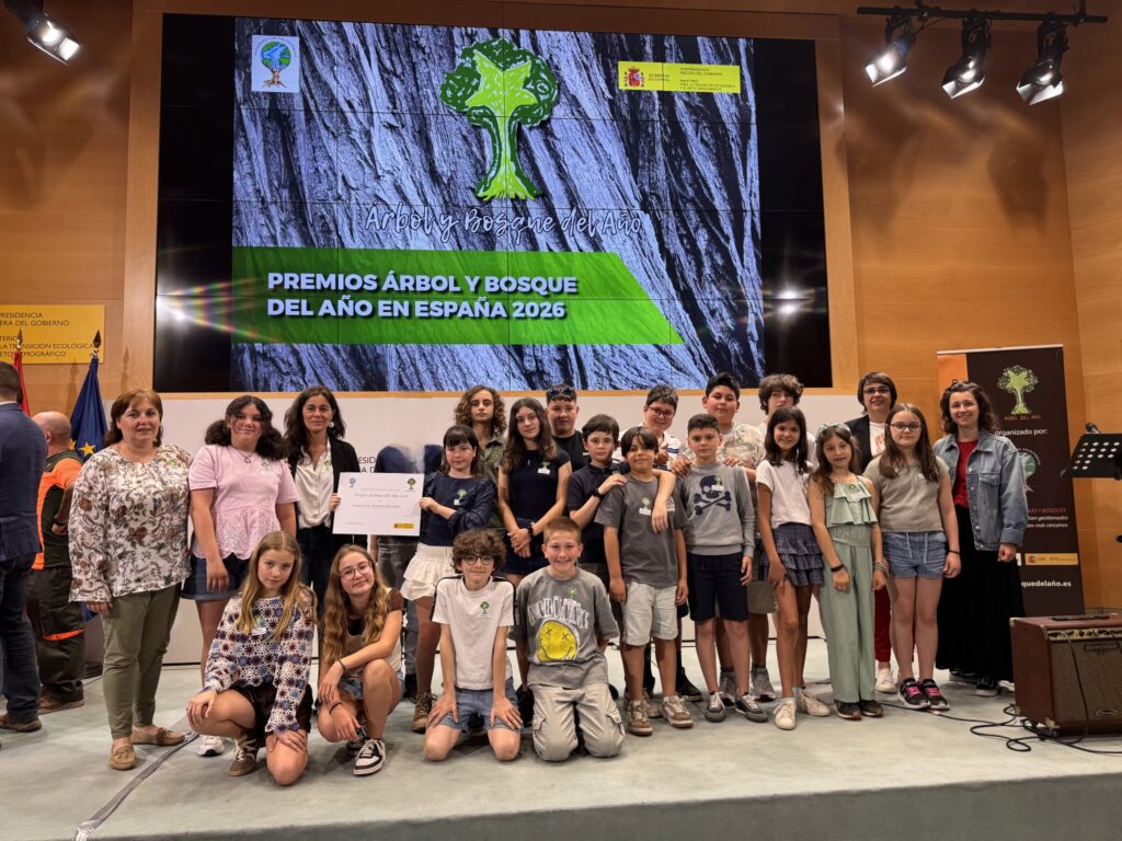 El Colegio Público Príncipe de Asturias de Las Regueras ha recogido en Madrid, en el Ministerio para la Transición Ecológica y el Reto Demográfico, el premio Bosque Urbano del Año en España 2026.